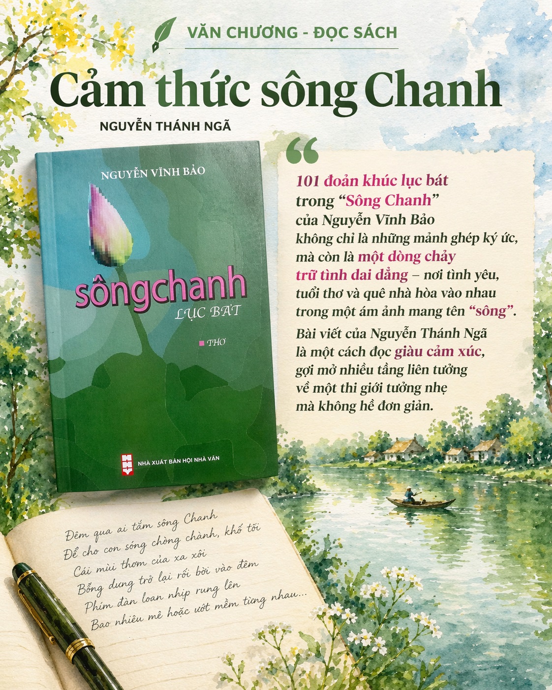 101 đoản khúc lục bát trong “Sông Chanh” của Nguyễn Vĩnh Bảo không chỉ là những mảnh ghép ký ức, mà còn là một dòng chảy trữ tình dai dẳng – nơi tình yêu, tuổi thơ và quê nhà hòa vào nhau trong một ám ảnh mang tên “sông”. Bài viết của Nguyễn Thánh Ngã là một cách đọc giàu cảm xúc, gợi mở nhiều tầng liên tưởng về một thi giới tưởng nhẹ mà không hề đơn giản.