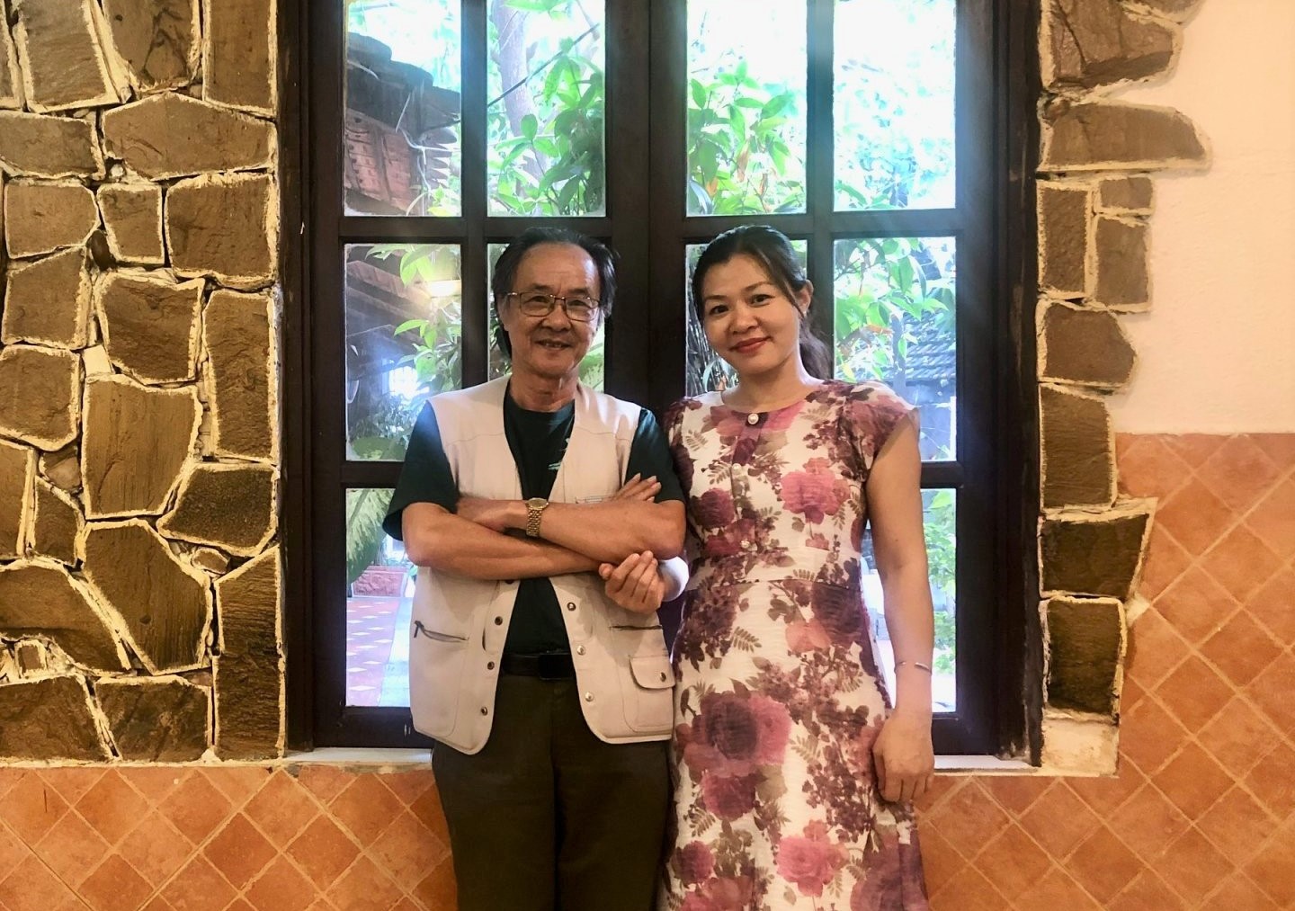 Tác giả Nguyễn Thị Minh Phương bên bố - LS, nhà thơ Nguyễn Minh Tâm - Ảnh: NH.