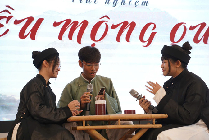 Ở không gian “Giao thoa – Di sản trong nhịp sống”, văn học tiếp tục được đặt trong bối cảnh đương đại. Chương trình “Cửa sổ văn học” với phim ngắn, trò chơi tương tác đã biến kiến thức thành trải nghiệm sinh động. Đặc biệt, mô hình “Kiều Mộng Quán – Gieo quẻ nhân sinh” được xem là điểm nhấn độc đáo. Tại đây, Truyện Kiều được khai thác dưới góc nhìn chiêm nghiệm và “chữa lành”, đáp ứng nhu cầu tinh thần của người trẻ. Cách làm này cho thấy một hướng đi mới trong dạy học ngữ văn: không chỉ cung cấp tri thức mà còn giúp học sinh kết nối với cảm xúc, bản thân và đời sống.