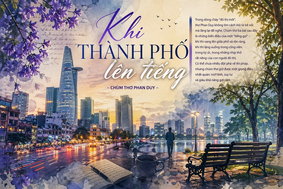 Trong dòng chảy “đô thị mới”, thơ Phan Duy không tìm cách mô tả bề nổi mà lắng lại để nghe. Chùm thơ ba bài sau đây là những biến điệu của một “tiếng gọi” – khi thì vang lên giữa phố xá rộn ràng, khi thì lặng xuống trong công viên, trong ký ức, trong những nhịp thở rất riêng của con người đô thị. Có thể chưa nhiều đột phá về thi pháp, nhưng chùm thơ giữ được một giọng điệu nhất quán: trữ tình, suy tư và giàu khả năng gợi cảm.