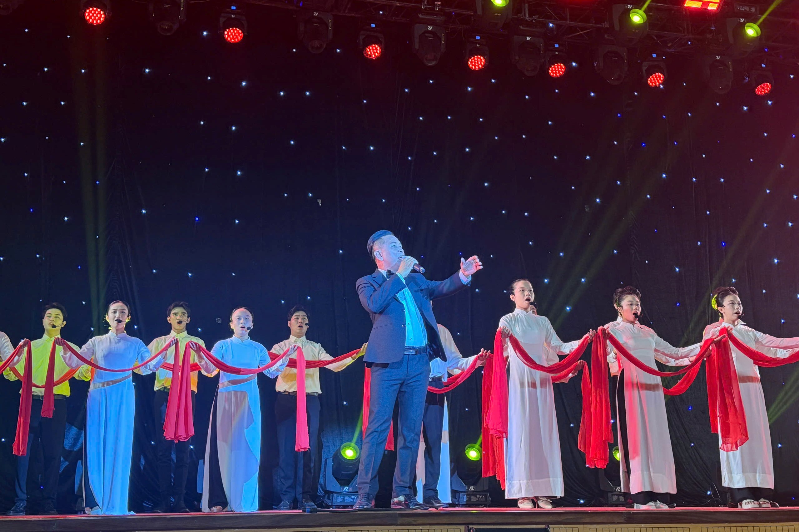 Mở đầu chương trình là ca khúc “Dấu chân phía trước” (thơ Hồ Thi Ca – nhạc Phạm Minh Tuấn), được dàn dựng công phu với hợp xướng và múa minh họa, dẫn dắt người xem trở về với dấu mốc lịch sử thiêng liêng của dân tộc, mở ra không gian nghệ thuật trang trọng và xúc động.