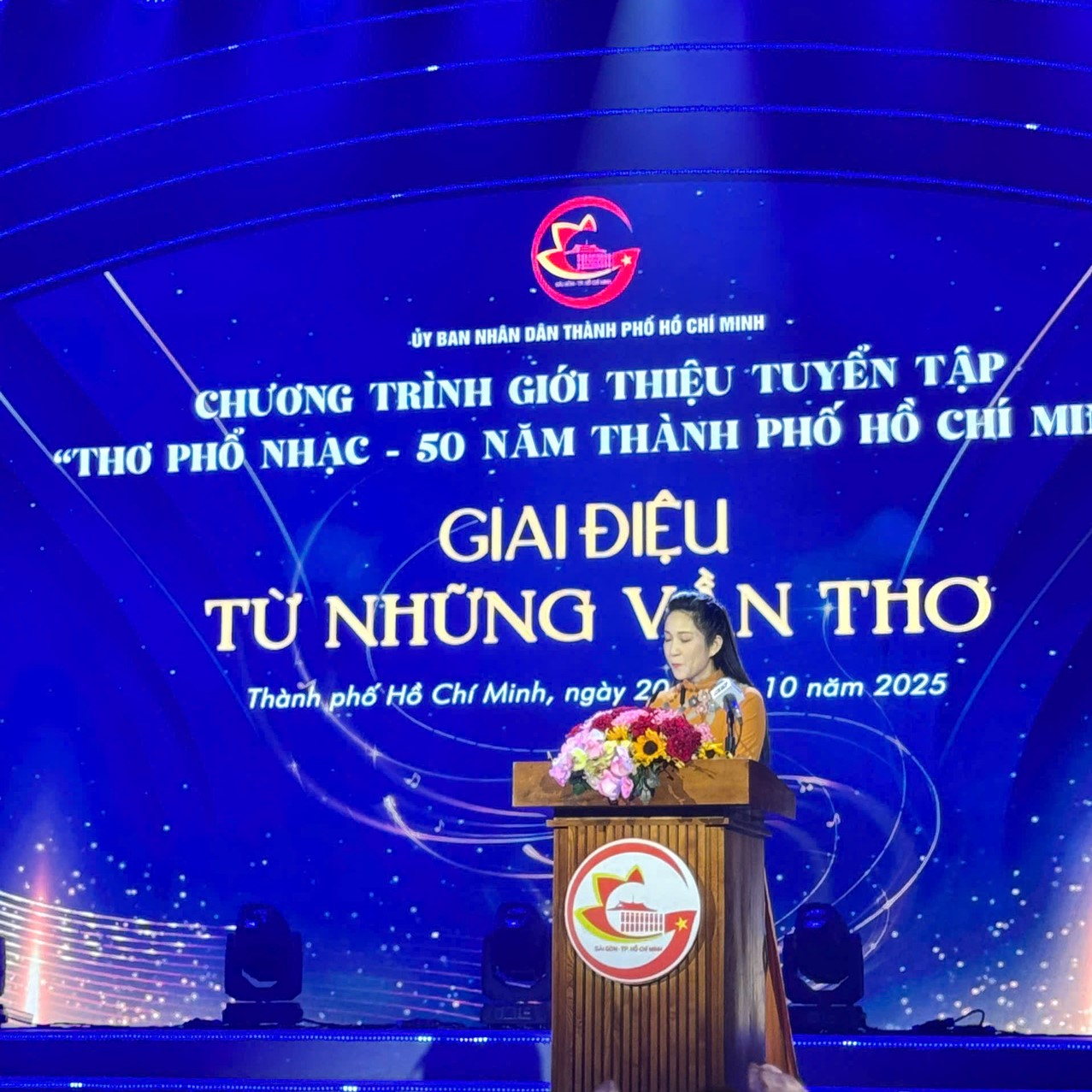 Tối 20/10/2025, tại Nhà Văn hóa Thanh Niên TP. Hồ Chí Minh, khán phòng rực sáng trong không gian giao hòa của âm nhạc và thi ca – nơi những vần thơ từng làm rung động bao trái tim được “hóa thân” trong âm thanh và giai điệu.