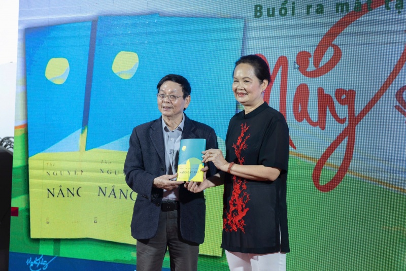Nhà văn Trịnh Bích Ngân và nhà thơ Nguyễn Ngọc Hạnh trong buổi ra mắt tập thơ “Nắng dậy thì”