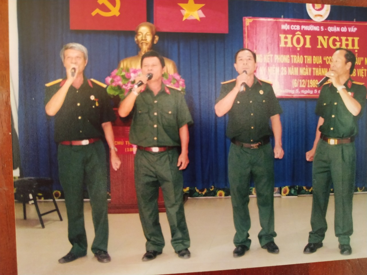 Nhà thơ Trần Trí Thông (bìa trái) hát cùng đồng đội.