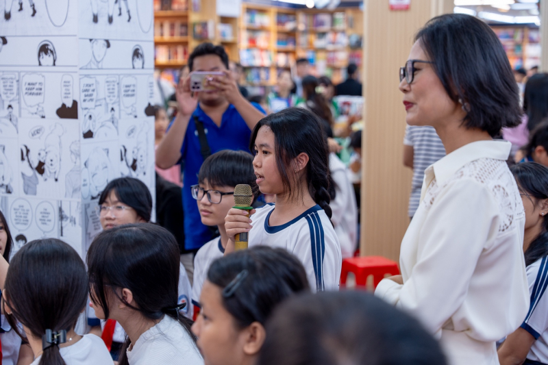 Buổi trò chuyện trở nên sôi nổi hơn khi MC dẫn chương trình là nhà văn, nhà báo Phương Huyền cùng nhiều phụ huynh đặt câu hỏi xoay quanh việc làm thế nào để con chủ động đọc sách, làm sao xây dựng được thói quen đọc một cách tự nhiên trong môi trường đầy các thiết bị giải trí?...