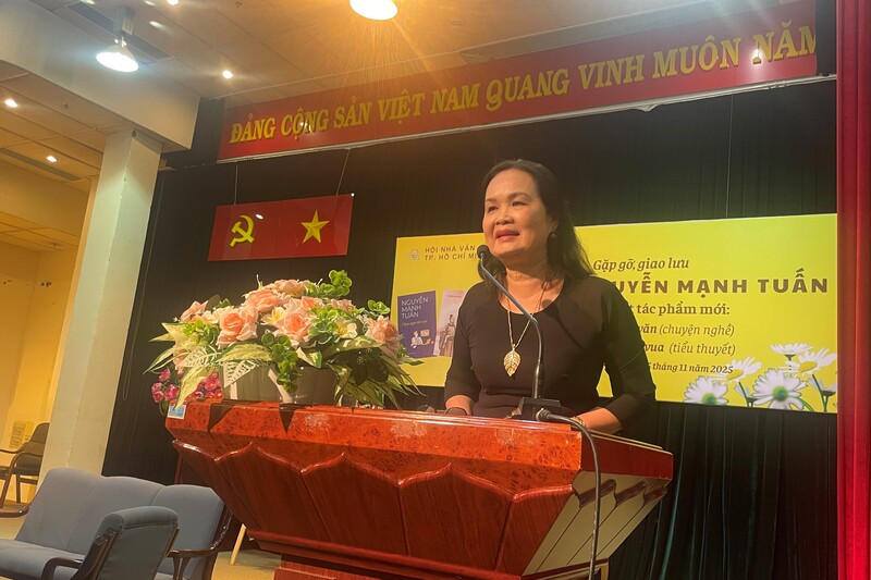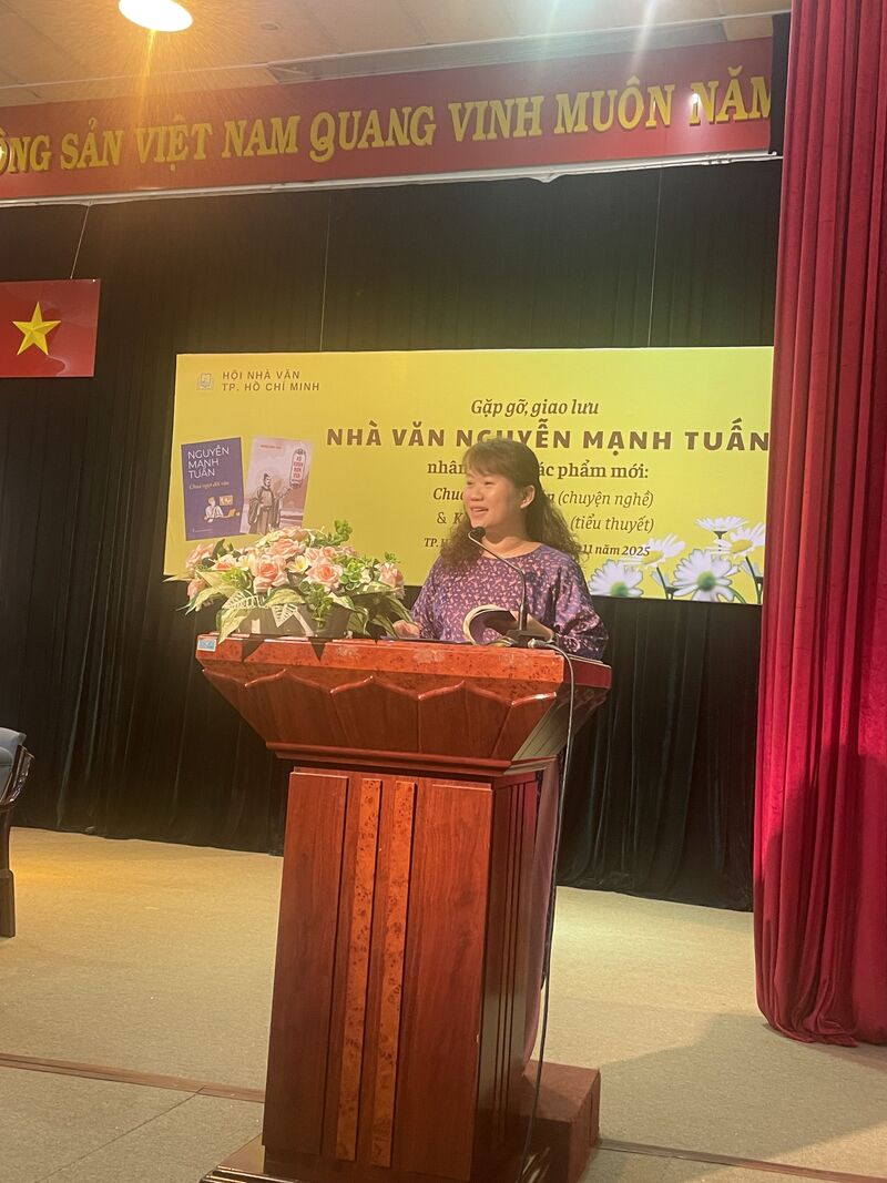 Phát biểu tại buổi lễ, nhà văn Trịnh Bích Ngân, Chủ tịch Hội Nhà văn TP.HCM, đã điểm lại hành trình sáng tác của tác giả sinh năm 1945. Bà cho biết, điều đáng quý ở Nguyễn Mạnh Tuấn là ông luôn chứng minh nhà văn có thể sống được bằng ngòi bút. Ông đã xin nghỉ việc Nhà nước để toàn tâm toàn ý cho sáng tác và trở thành một trong những tác giả có nguồn thu nhập đáng mơ ước so với đồng nghiệp.