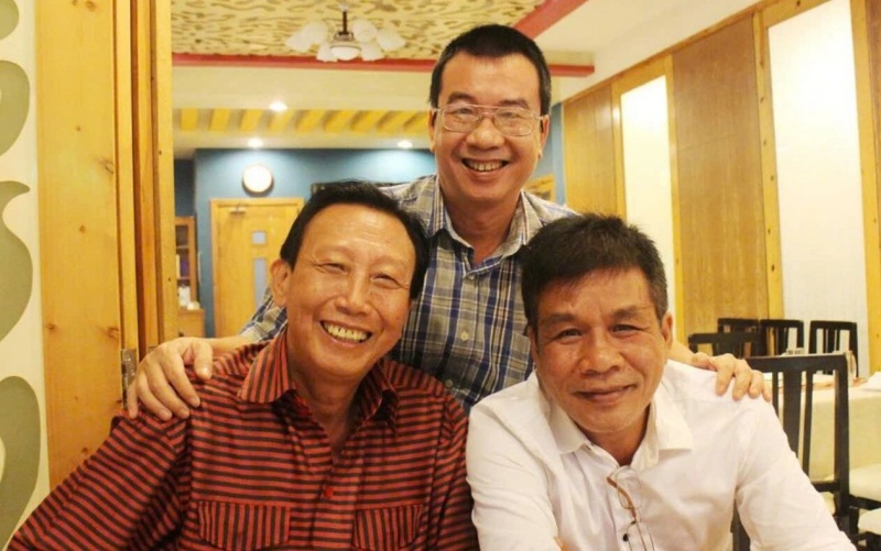 Nhạc sĩ Thế Hiển với hai người em thân thiết: cố nghệ sĩ Quý Bình (phải) và ca sĩ Nguyễn Phi Hùng (trái). Ảnh tư liệu