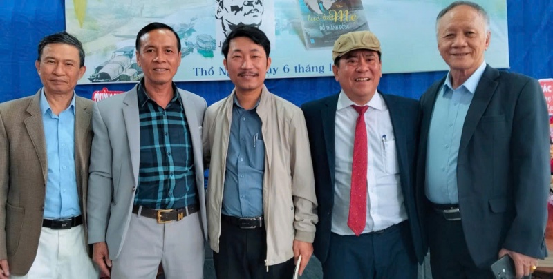 Nhà thơ Đỗ Thành Đồng và những người bạn trong lễ ra mắt tập thơ "Lục Bát Mẹ"