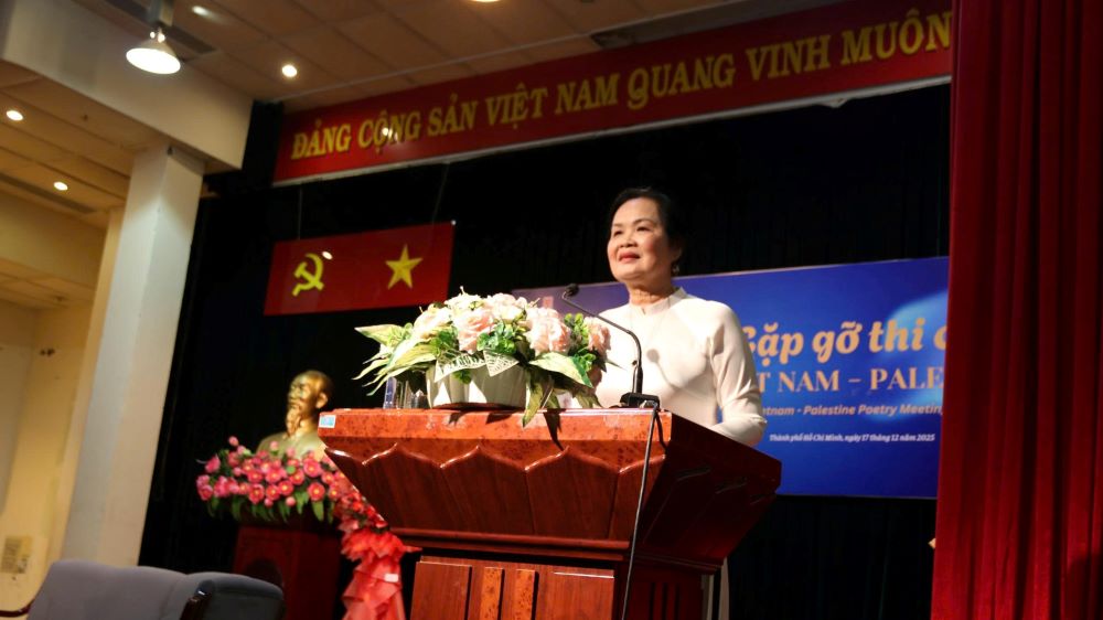 Sáng ngày 17/12/2025, tại Hội trường A – Liên hiệp các Hội Văn học Nghệ thuật TP. Hồ Chí Minh, đã diễn ra chương trình “Gặp gỡ thi ca Việt Nam – Palestine”, một sự kiện văn học quốc tế đặc sắc mang đậm tinh thần nhân văn và liên văn hóa. Chương trình do Hội Nhà văn Việt Nam phối hợp cùng Hội Nhà văn TP.HCM tổ chức, với sự tham dự của đông đảo nhà thơ, nhà văn, bạn đọc yêu thơ ca và đại diện cộng đồng bạn bè quốc tế.