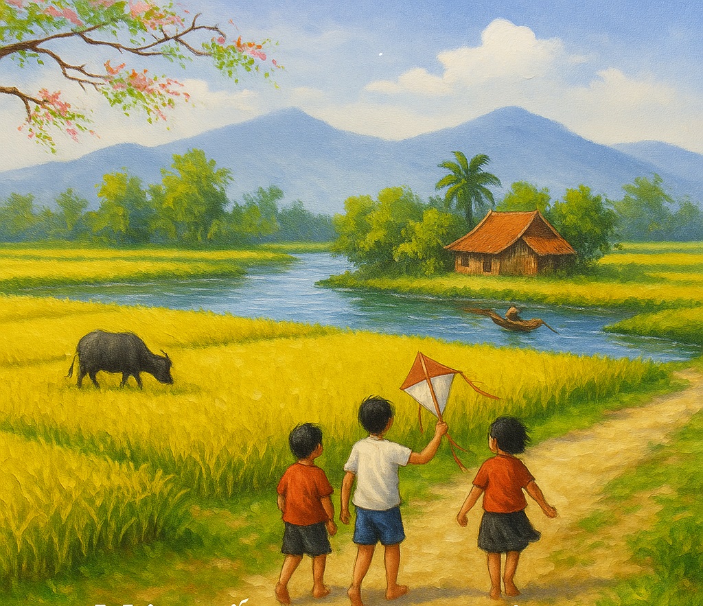 Một tuổi thơ trôi giữa bờ ruộng, lưng trời.