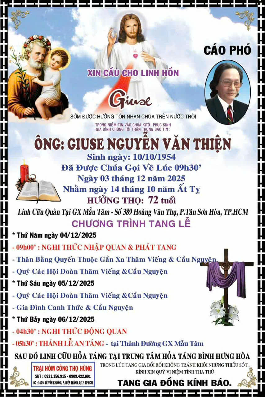 Nhà thơ TRẦN TRÍ THÔNG, hội viên Hội Nhà văn TP. Hồ Chí Minh, hội viên Hội Nhà văn Việt Nam, sau thời gian dài lâm trọng bệnh, đã từ trần lúc 19h30 ngày 29/10/2025 tại TP. Hồ Chí Minh, hưởng thọ 70 tuổi.