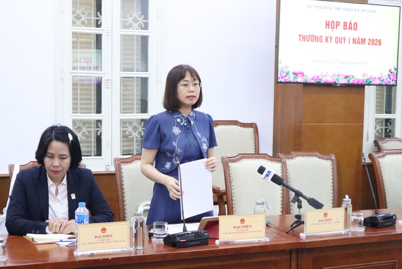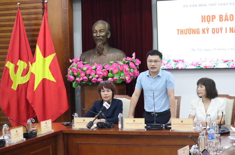 Ngày 15/4/2026, tại Hà Nội, Bộ VHTTDL tổ chức họp báo thường kỳ Quý I năm 2026. Chánh Văn phòng, Người phát ngôn của Bộ VHTTDL Cao Lê Tuấn Anh chủ trì họp báo.