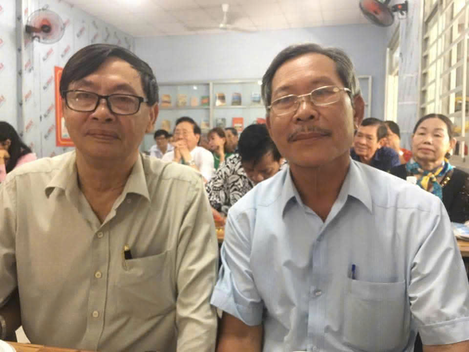 Đôi bạn đồng hương - các nhà thơ Nguyễn Văn Mạnh và Phạm Trung Tín (phải).
