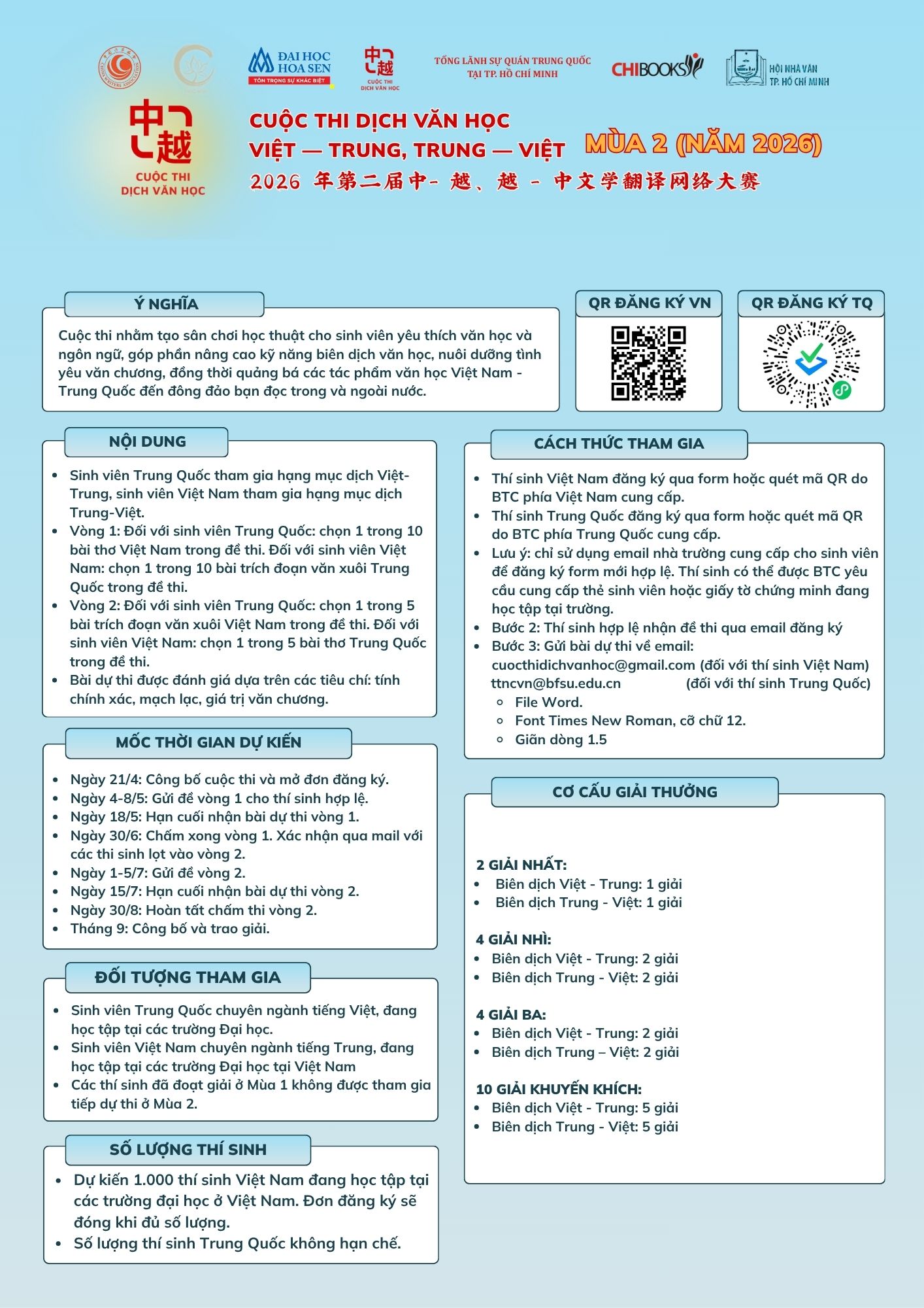 - Cuộc thi Dịch Văn học Việt – Trung, Trung – Việt mùa 2 (2026)