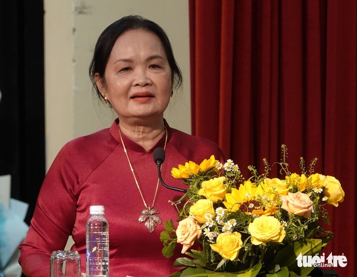 Chủ tịch Hội Nhà văn TP.HCM Trịnh Bích Ngân phát biểu trong buổi lễ tổng kết hoạt động của hội năm 2025 - Ảnh: LINH ĐOAN