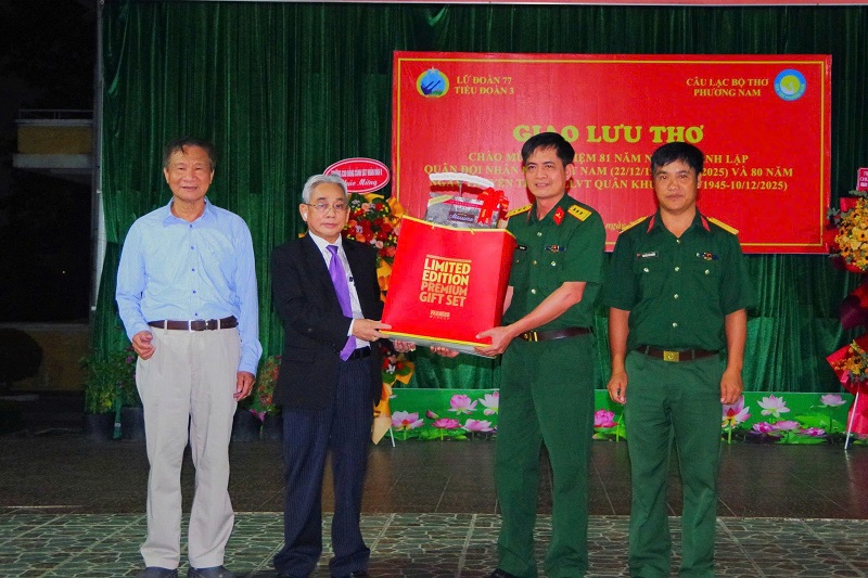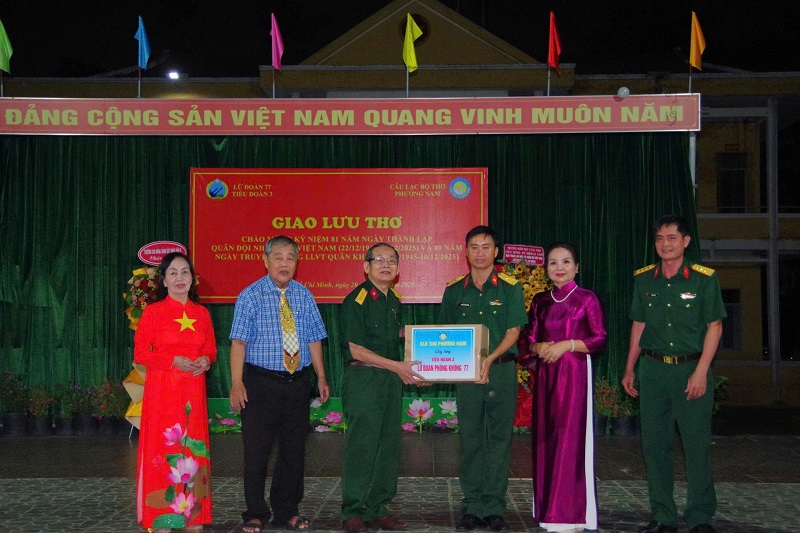 Nhằm chào mừng kỷ niệm Ngày thành lập Quân đội Nhân dân Việt Nam (22/12), tối ngày 20/12/2025, Tiểu đoàn 3 thuộc Lữ đoàn 77 Phòng không phối hợp cùng Câu lạc bộ Thơ Phương Nam TP. Hồ Chí Minh tổ chức đêm giao lưu thơ tại Bộ Chỉ huy Tiểu đoàn.