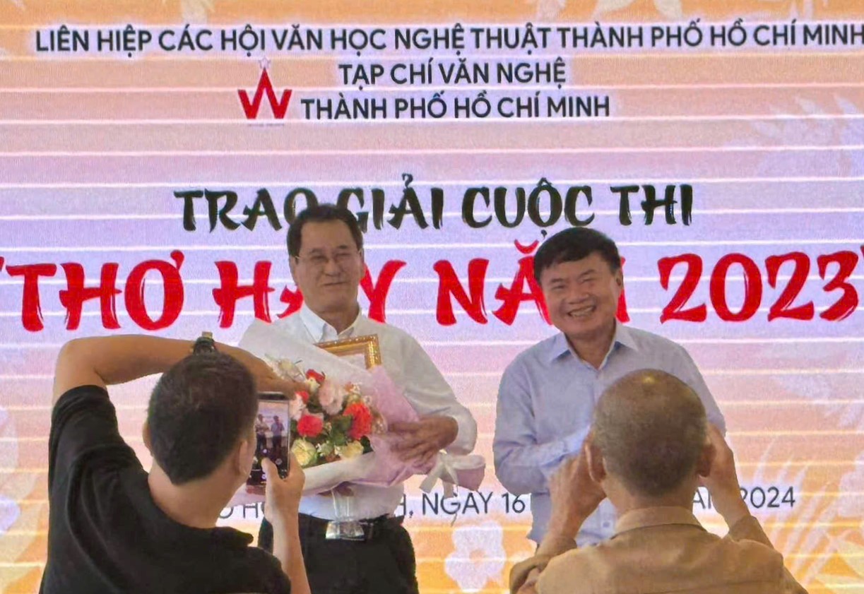 Nhà thơ Hồ Thi Ca được nhà thơ Lâm Xuân Thi uỷ quyền làm đại diện Quỹ Tình Thơ tại Lễ trao giải Cuộc thi Thơ Hay 2023 do Tạp chí Văn Nghệ TPHCM tổ chức.