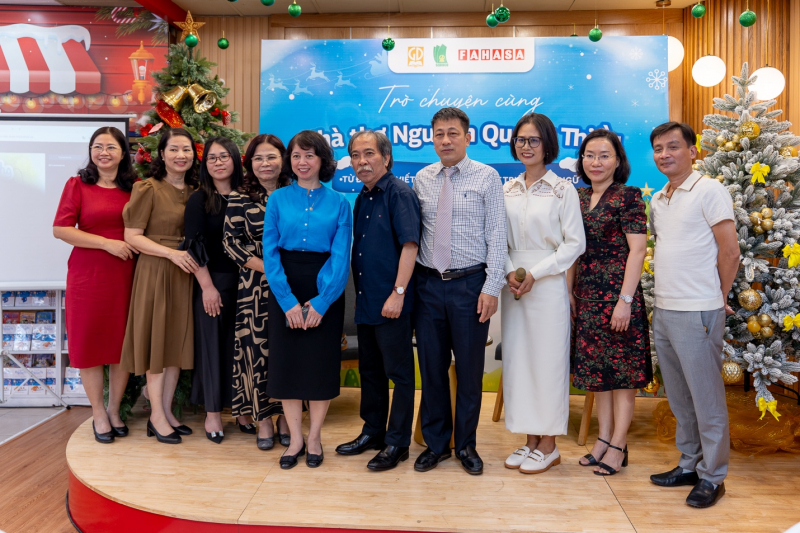 Lãnh đạo Nhà xuất bản Giáo dục Việt Nam cùng Công ty Giáo dục Phương Nam, Nhà sách Fahasa và các đại biểu chụp ảnh lưu niệm với nhà thơ Nguyễn Quang Thiều.
