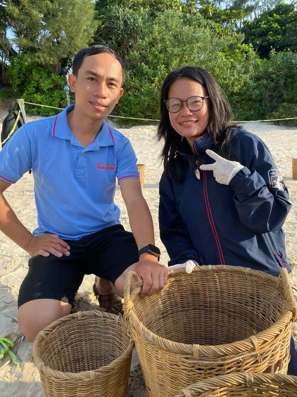 “Truyền thống” mà Bảo Bình nói là chỉ dùng tay trần để moi cát tìm trứng và di dời trứng. Các bạn không được dùng găng dày, vì chỉ dùng tay trần mới cảm nhận từng quả trứng mong manh như giấy ướt. Nhưng cát thì cứng, sạn thì sắc, có bạn tình nguyện viên bị miểng chai cắt. Ngón tay đau rát nhưng không được dừng, vì còn hàng trăm quả trứng đang cần được chuyển đi. Bạn nói: Cuối mùa, bàn tay toàn vết cắt, vết xước, thô ráp như rễ cây mùa khô…