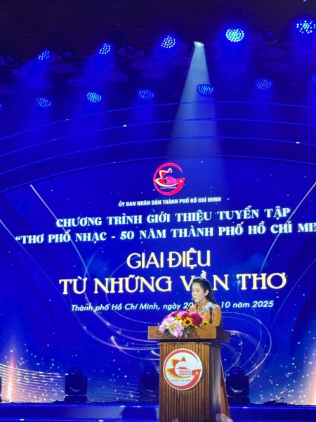Tối 20 -10, tại Nhà văn hóa Thanh niên (phường Sài Gòn, TP. Hồ Chí Minh), Sở Văn hóa và Thể thao TP. Hồ Chí Minh phối hợp với Hội Nhà văn Thành phố tổ chức chương trình giới thiệu tuyển tập “Thơ phổ nhạc - 50 năm TP. Hồ Chí Minh” với chủ đề “Giai điệu từ những vần thơ”.